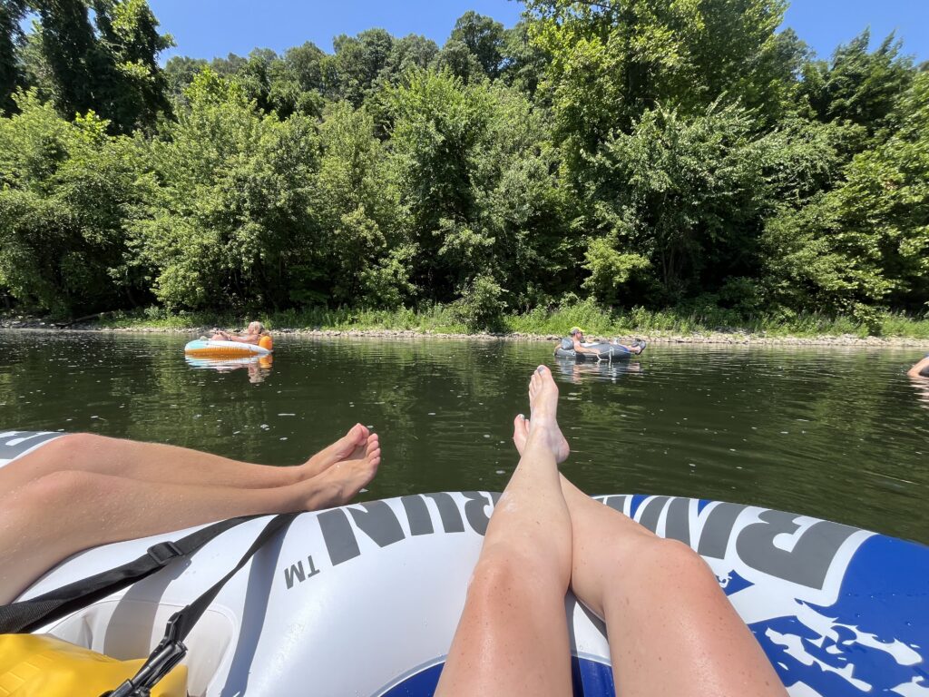 On Saturday, we piled into a couple cars, strapped our double innertube (with a cooler and cup holders!) on top of the vehicles, and headed down to the river access of the Juniata River. We were initially made fun of for our connected innertube, with people claiming that we would get stuck frequently. To their surprise, we had a lovely float and were extremely comfortable with lots of cool drinks. I don’t think we got stuck once! When we got back, we ventured out into the river for a little bath. It was shocking how strong the river was even at shallow depths. Jeffrey enjoyed looking at the bed of the river looking for treasure as well. That evening, we met up with one of Jeff’s coworkers and his fiance that was at another site in the campground. They had brought an entire fridge and stove for their week of fishing and camping! When we returned to our site, our group was giving out door prizes! We ended up taking home a step-up attachment (to be able to climb up to the top bunk of the van easier) from Van Cafe (a popular website to order vanagon parts from)! We were pretty excited! We enjoyed tortilla pizzas for dinner while listening to bluegrass music again.