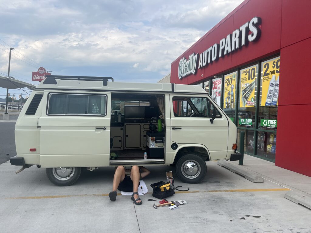 We called AAA, but Jeffrey learned that O’Reilly Auto Parts (down the hill we just struggled up) had a fuel pump. So instead of waiting for AAA, we flew back down the mountain and made it to the auto parts store where Jeffrey changed the fuel pump in the parking lot. Thank goodness I married an engineer! His knowledge has come in handy so many times on our trips! We then drove back up the mountain, had a 40-minute phone call with AAA trying to cancel our tow, and stopped at an ice cream stop for dinner. Was that risky? Yes, we totally could’ve died on the side of the road again. Were we hungry? Also yes. And a lot of times, food takes precedent. After having milkshakes, hot dogs, hamburgers, and mac n cheese bites (a very healthy dinner after a long day), we finally made it back to the safety of our home. What an adventure!