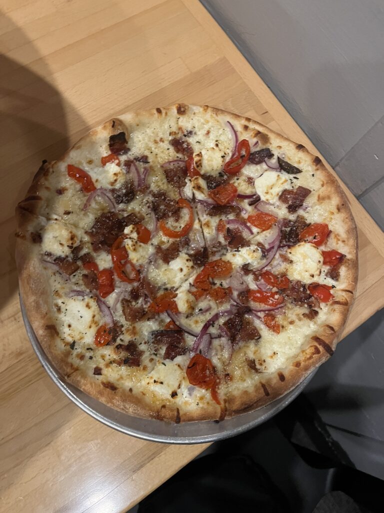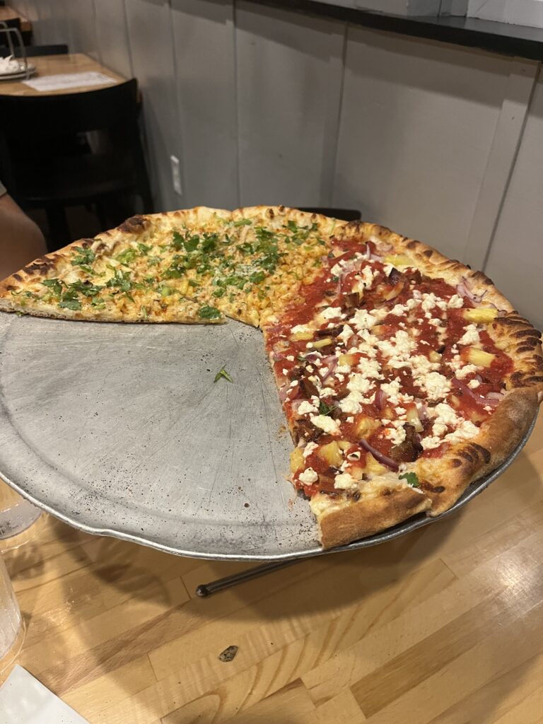 For dinner that night, we went to Pies and Pints in Fayetteville, West Virginia. We ended up getting the street corn pizza (corn, tahini, jalapenos, lime, cilantro, scallions, chipotle crema, spices), pine & swine pizza (pineapple, bacon, red onion, feta), and the peppadew pizza (goat cheese, bacon, red onion, peppadews, cheese, herbs, honey). We weren’t planning on trying too many new pies, but they had messed up the original pizza order and corrected it, thus bringing us out a third pizza! I think my favorite was the peppadew. I really liked the salty, creamy, goat cheese clusters and the honey drizzled on top. It was so yummy! We had lots of leftovers (which made us super grateful for our fridge!), and it was really delicious. Our waitress (Laura? Lauren? I can’t remember) was fantastic! She was super personable and friendly!