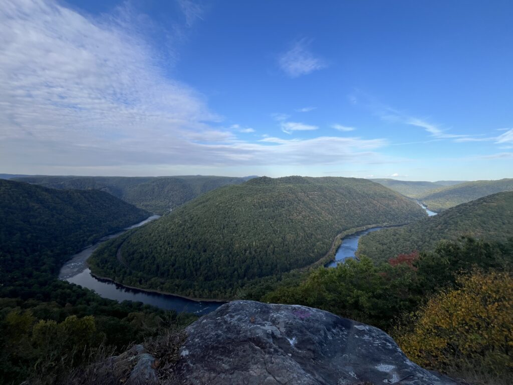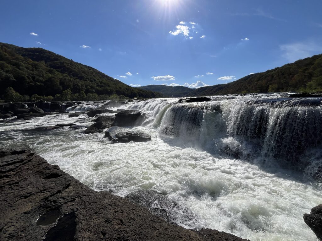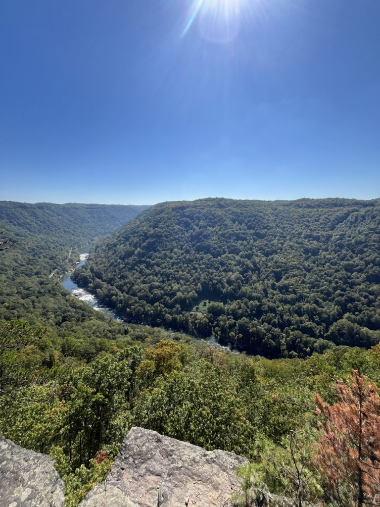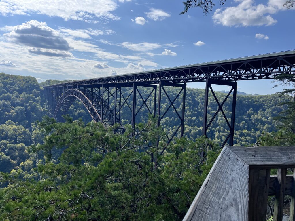 We woke up at The Alpine Climbing Club and got ourselves ready for fun in New River Gorge! We started in the visitor’s center to get our park stamps for our national parks book. We did a fun hike to a really pretty overlook before going on a drive through the 45-minute old-route down into the gorge. Before the bridge, this was the only way to pass over the gorge and it took quite a long time with lots of twists and turns. We pulled over along the river for a quick lunch and were lucky enough to watch some kayakers pass through some of the white water! Jeffrey thinks it was at least a Level 4 rapid, with the kayakers team cheering them on once passing through.