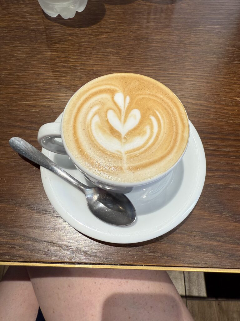 The daughter (who was about my age) sat next to me, and her boyfriend sat across the aisle. Her parents and brother were further back, and they all struggled to get their luggage through the aisles and into the train storage. The daughter was in this cocktail length, red-square patterned tank dress- not something fit to drag luggage through a train. She had her hair perfectly done, complete with all the perfect jewelry for her outfit. I felt so underdressed and unfabulous next to her, with my unwashed face (from having to rush through my morning routine) and comfortable travel clothes with an upset stomach for the day ahead of us. As soon as she sat down, all flustered, she started talking about where they were going and her family. She raised the straw on her Stanley, and it went “pshh,” like she was opening a pop can. Then she goes, “Oh and we accidentally bought sparkling water so now every time I go to get a drink it’s pressurized.” I died. She was so funny. Then her boyfriend started talking about Chick Fil A and how much he wanted some, but then they remembered they’d be returning to the states on a Sunday, and he was so annoyed. It made me feel good that another American was missing their creature comforts.