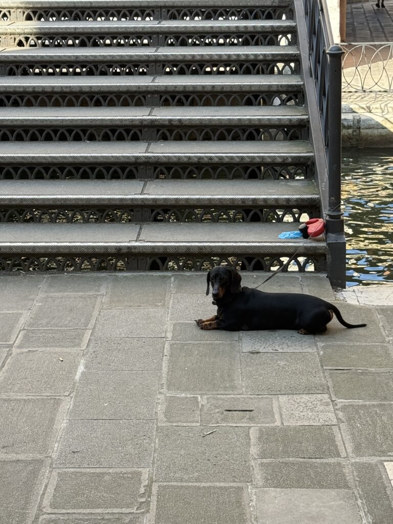 On our way to the boat, we stopped at St. Mark’s Cathedral and a grocery store to get a snack before the boat ride. We got a fresh baguette that was less than a euro (!!!), beef sticks (that did not taste like how I hoped they would), an Apple (I MISSED having fruit, and it felt so good to have something fresh), a peach tea, and a blue Powerade. It was the perfect little appetizer to hold us over until we found a spot for dinner after the boat ride. We also saw a cute little weiner dog waiting for his owner outside the grocery store- so cute!