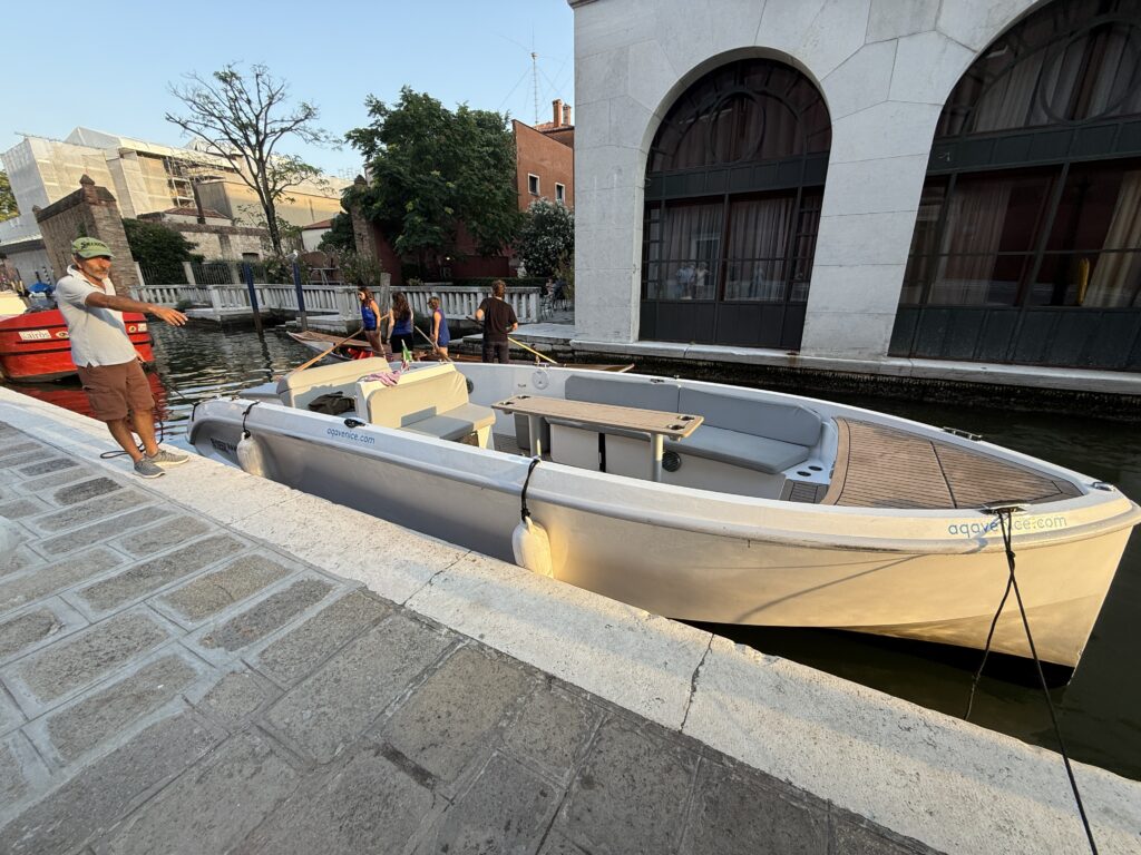 We sat in this restaurant for a good hour and a half. It had water, restrooms, and air conditioning- the trifecta we had been searching for. While here, we also planned the rest of our day in Venice, since we were only staying for the evening and leaving the next morning. We decided to book an electric boat cruise through the waterways of Venice to explore by boat rather than walking another 10 miles.