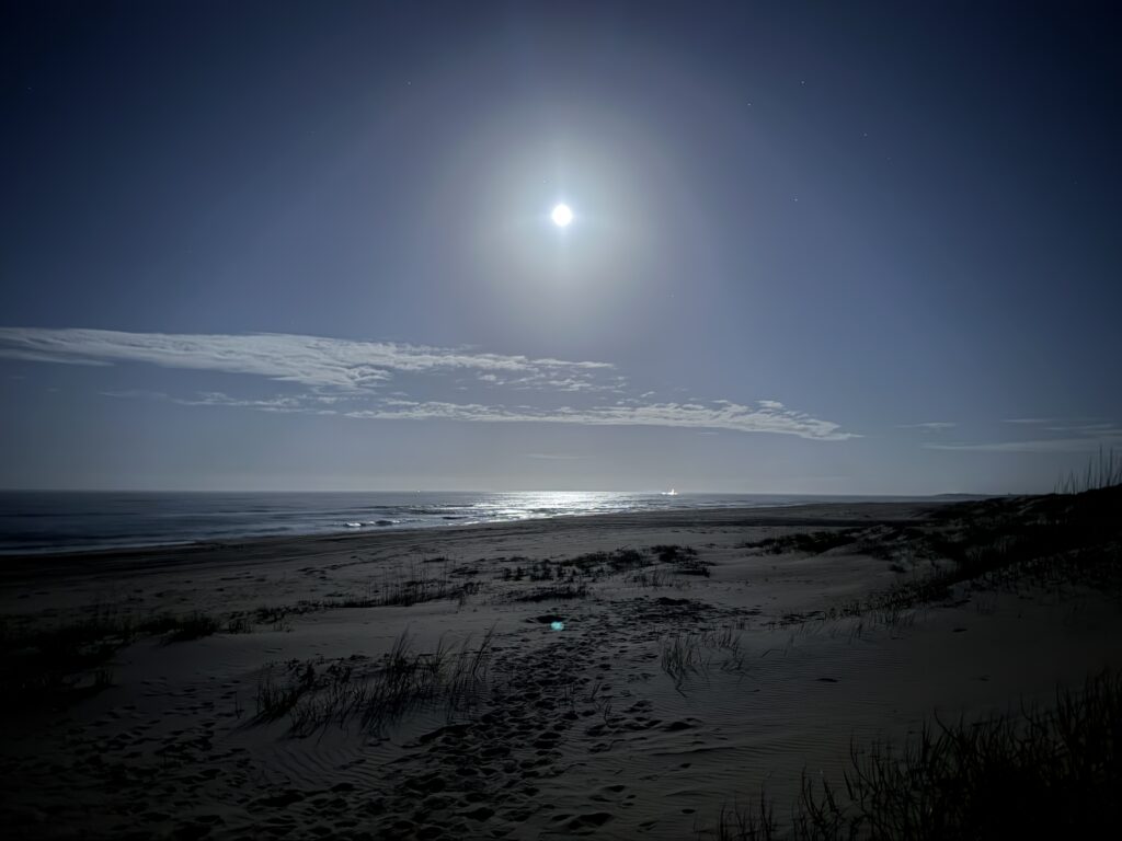 After dinner, the full moon shone BRIGHT, so we decided to go back to the beach at 10:00 and walk under the moonlight. It was so beautiful and calm. Just what we needed. We walked back over the dunes and went to bed, the temperature perfect for sleeping under the stars.