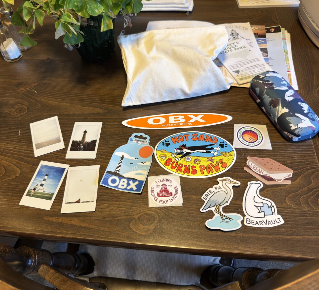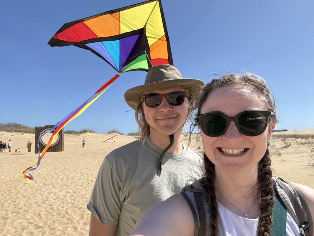 After flying the kite for a bit (and getting a little sun burnt), we went to the Kitty Hawk Kites store (trip #1), to see what kites they had and maybe get a tail for Jeffrey’s kite. The options were a little overwhelming (so many kites, styles, types, and price ranges!), and we ended up leaving with nothing. It was still fun to shop though! I also found the sweatshirt that I would end up getting on our last day at this first stop. (I am a crewneck girlie, and I love getting a sweatshirt from our travels. My sweet husband even promised to shop with me for a sweatshirt on one of the less nice days of our trip before I even mentioned it. We looked around, but this flag “Outer Banks” design (pictured at the bottom) would be the sweatshirt I kept coming back to.)