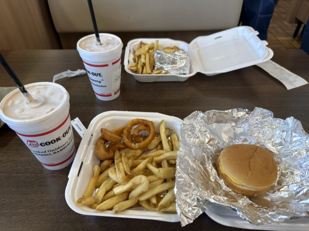 We left Kitty Hawk Kites and noticed a lot of people in line for Cook Out, a fast food restaurant. It was lunch time, and typically long lines means good food, so we stopped. We got cheeseburgers, fries, and then two bonus sides of onion rings and fried mozzarella balls. We also got AMAZING chocolate milkshakes. The food was okay, but the milkshakes (and the 40 milkshake flavor options) was the redeeming quality of this establishment. We ended up saving almost a whole milkshake and putting it in our freezer to share for another dessert (which ended up being one of our best ideas of this trip).