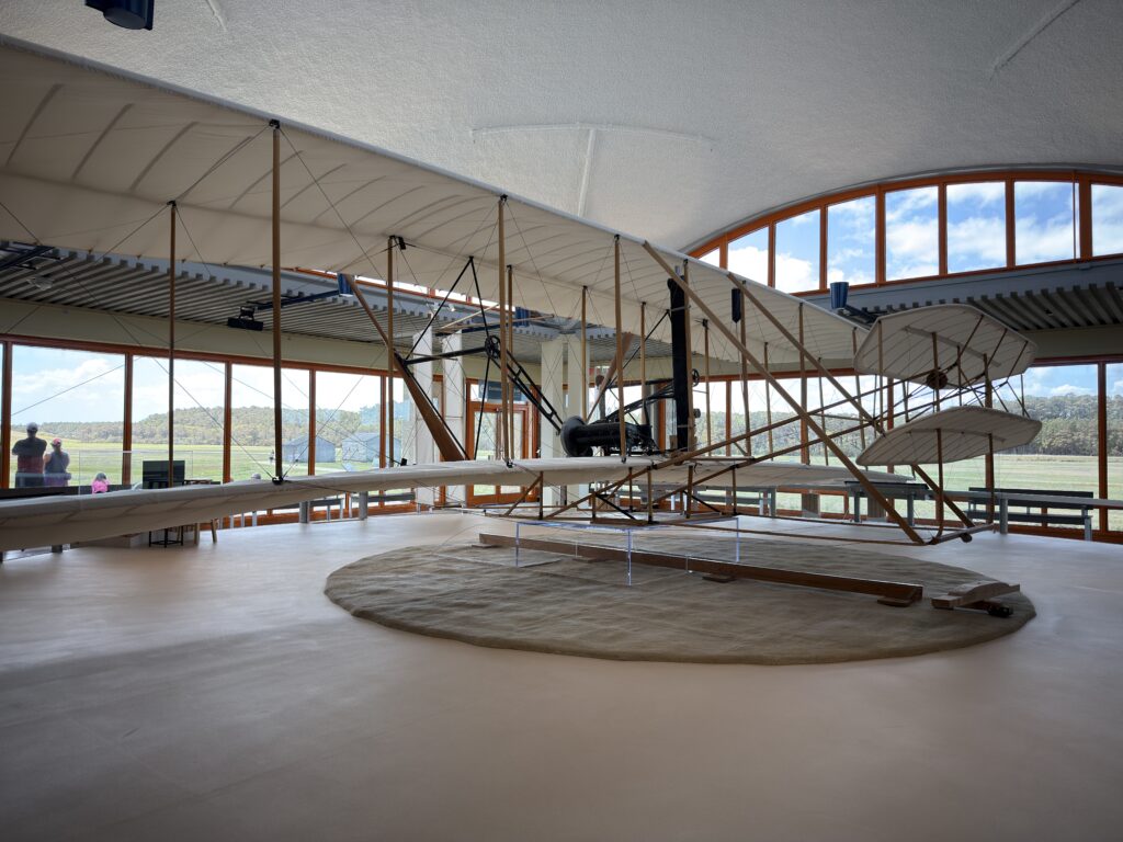 After lunch, we paid the $20 to enter the Wright Brothers National Museum. We toured the building and learned about Orville and Wilbur, their upbringing, and the beginning of flight. It’s crazy how much can be invented over a little more than 100 years! We then walked up to the memorial on top of the hill to view their original flight path. We met the sweetest dog named Tinto here, who was a large black mutt who was named after a small cup of black coffee in Columbia. I loved the name, story, and connection to his family’s culture, and he was the sweetest boy. We walked back to the parking lot (where we met another black and white mutt named Rocket- so, so sweet!) and drove down to the metal statues that reenacted their first flight. We also got to see the single picture taken of this first flight, taken by someone who had never used a camera before and somehow managed to get the timing perfect for capturing this first flight. Wild!