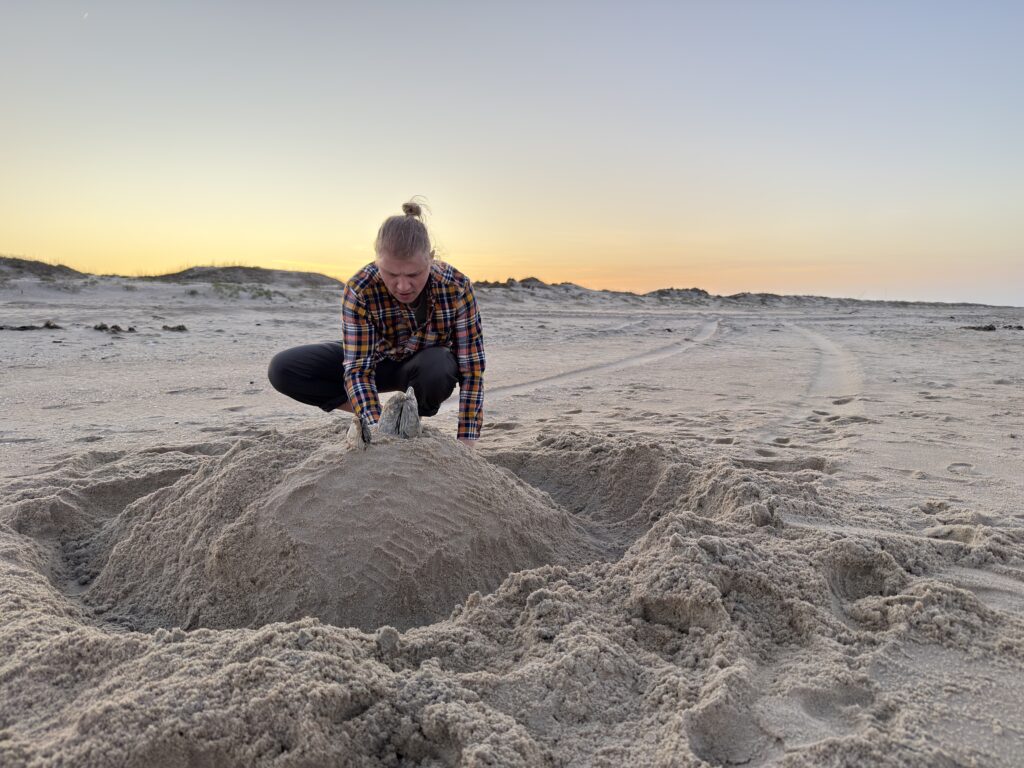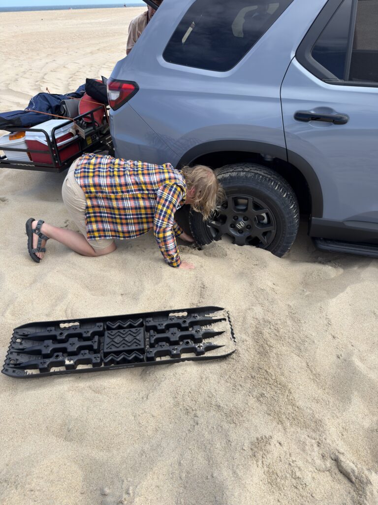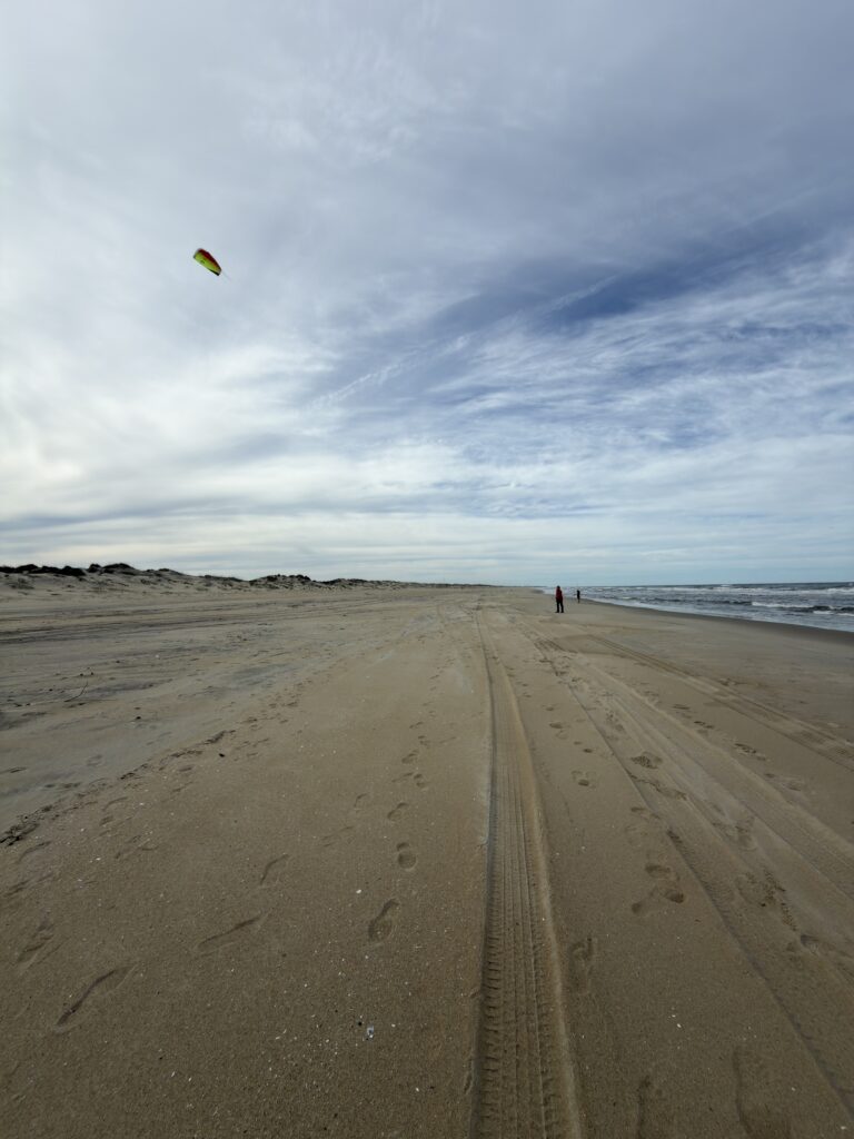 And it was good thing too, because we immediately came across someone who risked their vehicle to drive across the sand, and it didn’t quite work out. That would’ve been us. A man had driven his SUV on the sand and had almost made it out but had gotten stuck pretty deeply in the sand. He had recovery gear, but it wasn’t quite adequate. Jeffrey started to help and soon we had others (a local man and a family from Maryland with 2 teenage boys who were VERY eager to help) helping as well. After a while, a local North Carolina man came with allllll the right gear and pulled him out very quickly. He definitely saved the day! The ironic part was that the beach patrol came through on their golf cart, going right past the stuck car and then got themselves stuck! They hadn’t put it in 4 wheel drive before entering the sand, and Jeff and I had to push him out! It was pretty funny! Jeffrey also loves watching YouTube videos about off road recovery, so actually stepping in to help someone was a true joy for him.