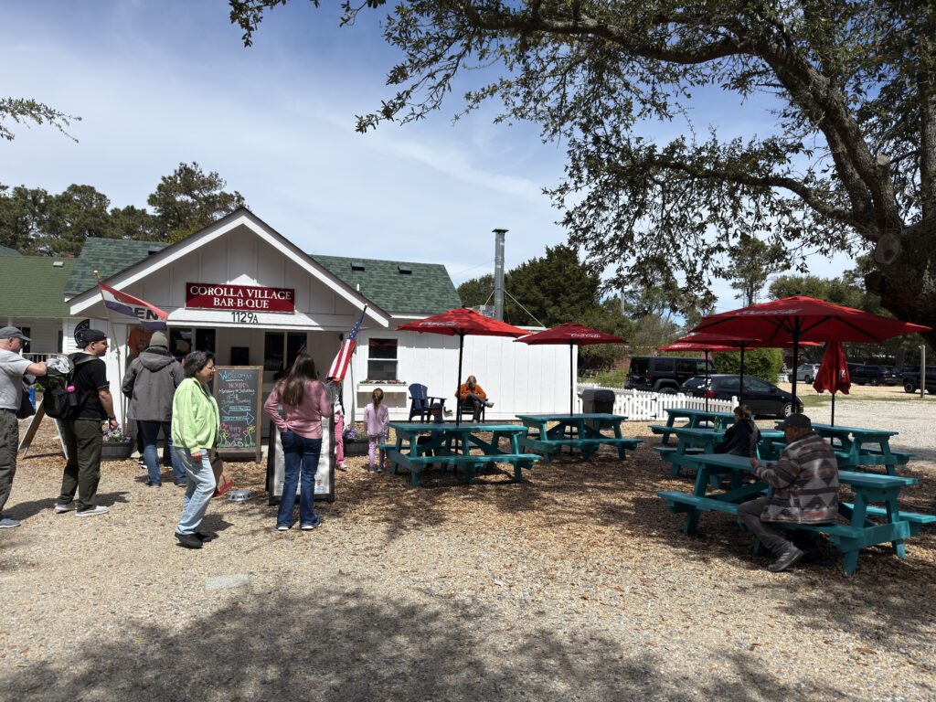 We had lunch at Corolla Village Bar-B-Que where we had pulled pork sandwiches and mac n cheese. We decided that there wasn’t much more in Corolla we wanted to see, so we decided to try and find a beach to have a beach afternoon. We drove around Corolla and Duck trying to find public beach access, and we actually found it kind of difficult! There were a couple small parking lots in some neighborhoods, but it was still a good half a block walk to the actual beach. We drove around looking at the homes (while looking for the beach access) and noticed that it was trash day. There were SO many rusted grilles and bikes out for the trash! We almost came home with a bike but decided that fixing the rust wasn’t worth the effort of dragging it home. After we realized how hard it was to find beach access and we had exhausted looking at all the pretty homes on public streets, we decided to head back to our campground beach and set up there.